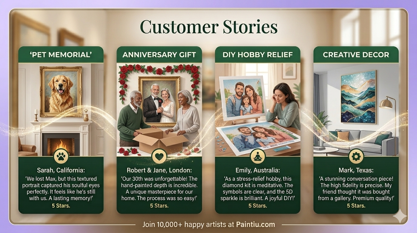 Premium Diamond Painting Experience: We use HD poured glue canvases and 30% extra resin diamonds to ensure your DIY journey is smooth and shimmering.